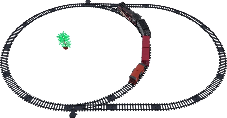 Șinele din plastic rezistent, cu sistem simplu de fixare prin clic, permit construirea rapidă a unui oval, a unei forme de opt sau a unei bucle duble, în funcție de spațiu și imaginație.