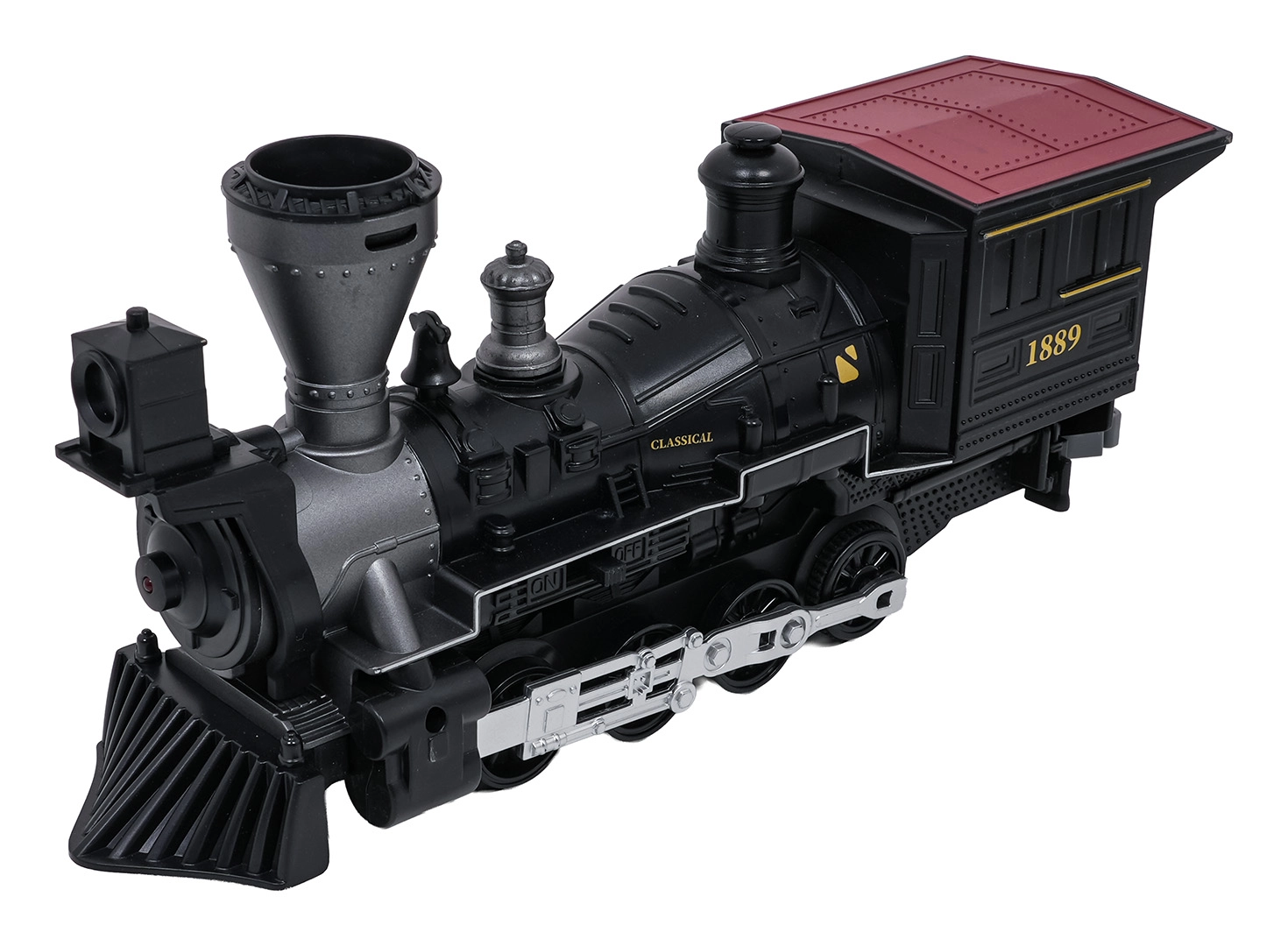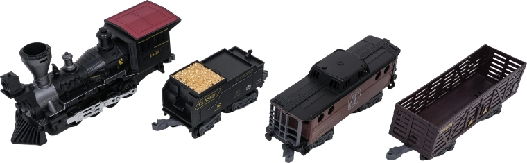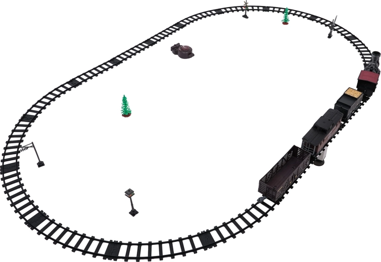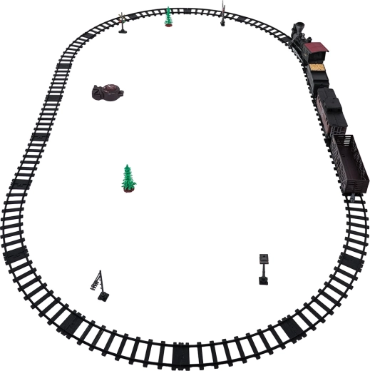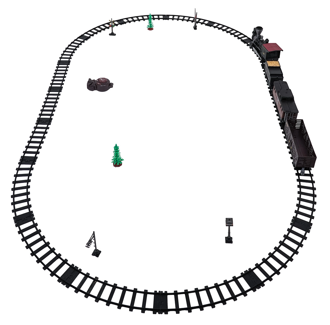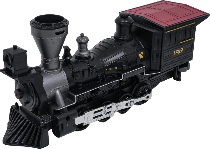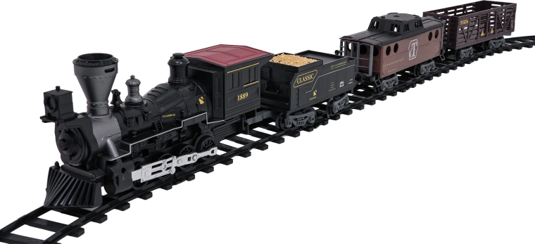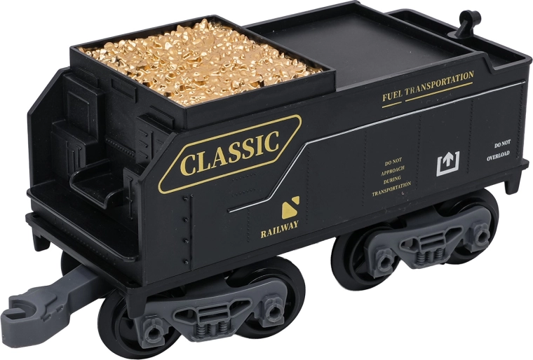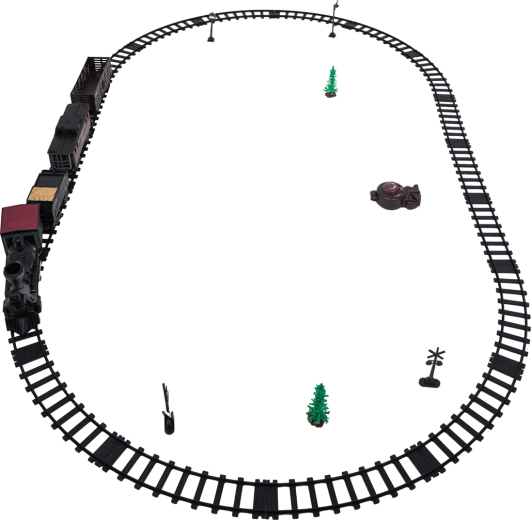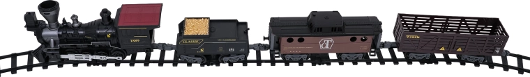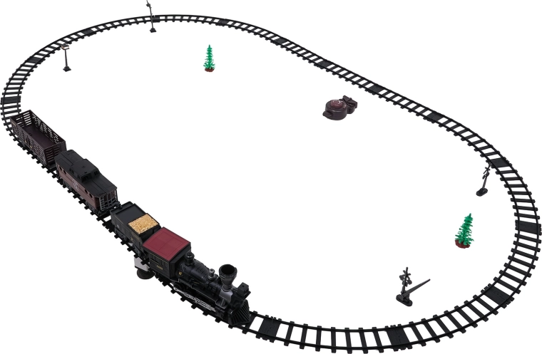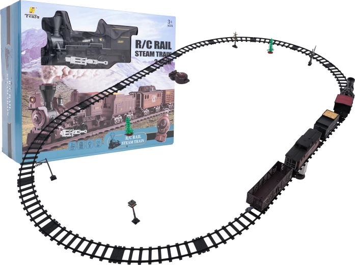 Trenulețul cu abur, stilat și bogat în detalii, îi va încânta pe micii și marii pasionați de căi ferate. Locomotiva, după completarea cu apă, creează un efect real de fum, în față luminează farul, iar în timpul mersului se aud sunete autentice, ce pot fi dezactivate la nevoie. Șinele din plastic rezistent se îmbină ferm și sunt sigure pentru copiii de la 3 ani.