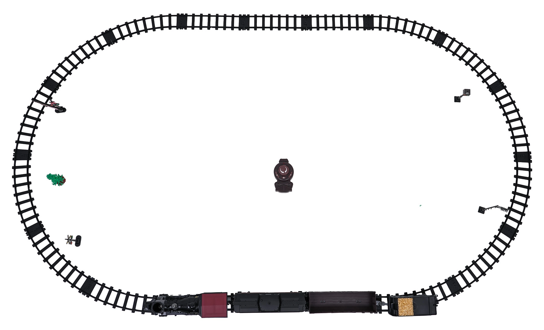Șinele modulare din plastic se îmbină ferm și formează un oval mare pentru rularea lină a trenulețului.