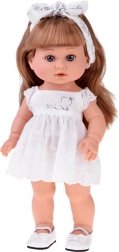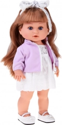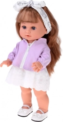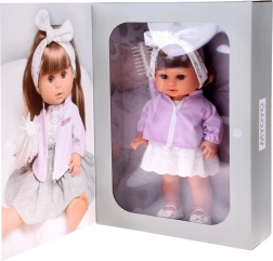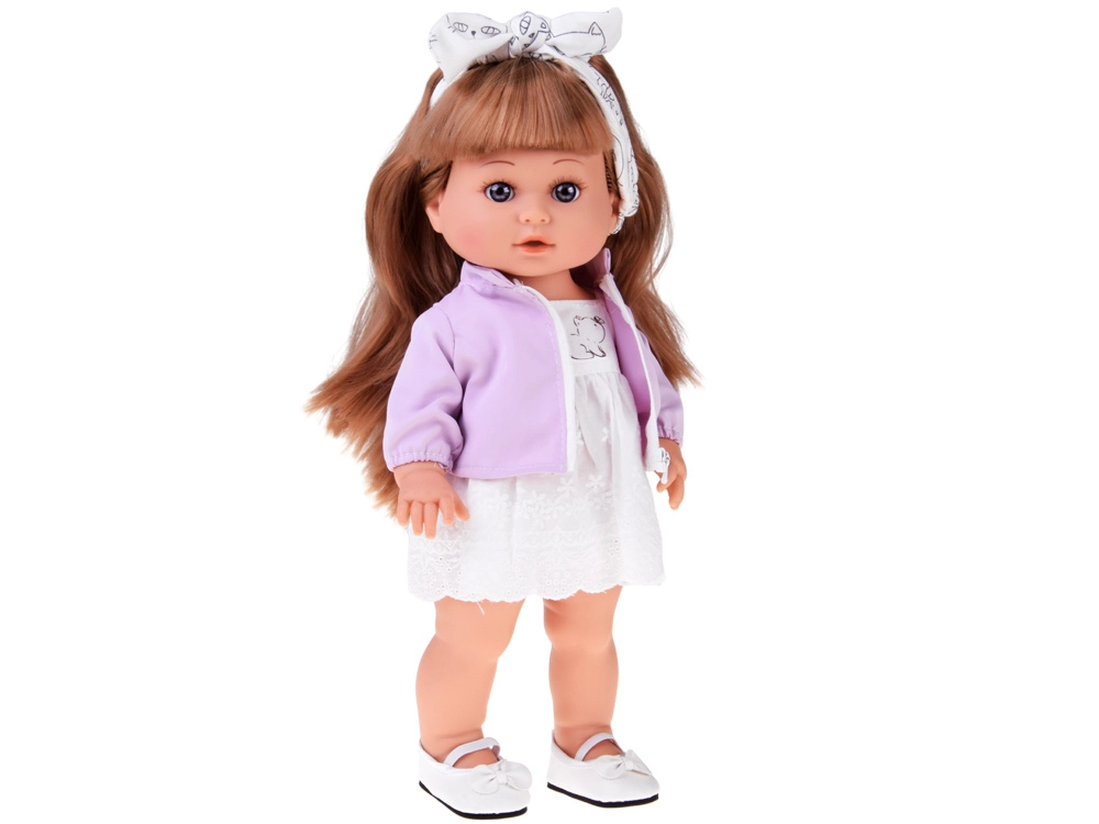 Descoperă o păpușă adorabilă cu păr lung, înălțime 38 cm, care va încânta micile coafeze și pasionații de modă. Are trăsături realiste, păr lung șaten pentru coafat, membre mobile și poartă o rochie albă din dantelă cu jachetă liliachie. Include o perie de păr pentru coafuri nesfârșite și joacă creativă.