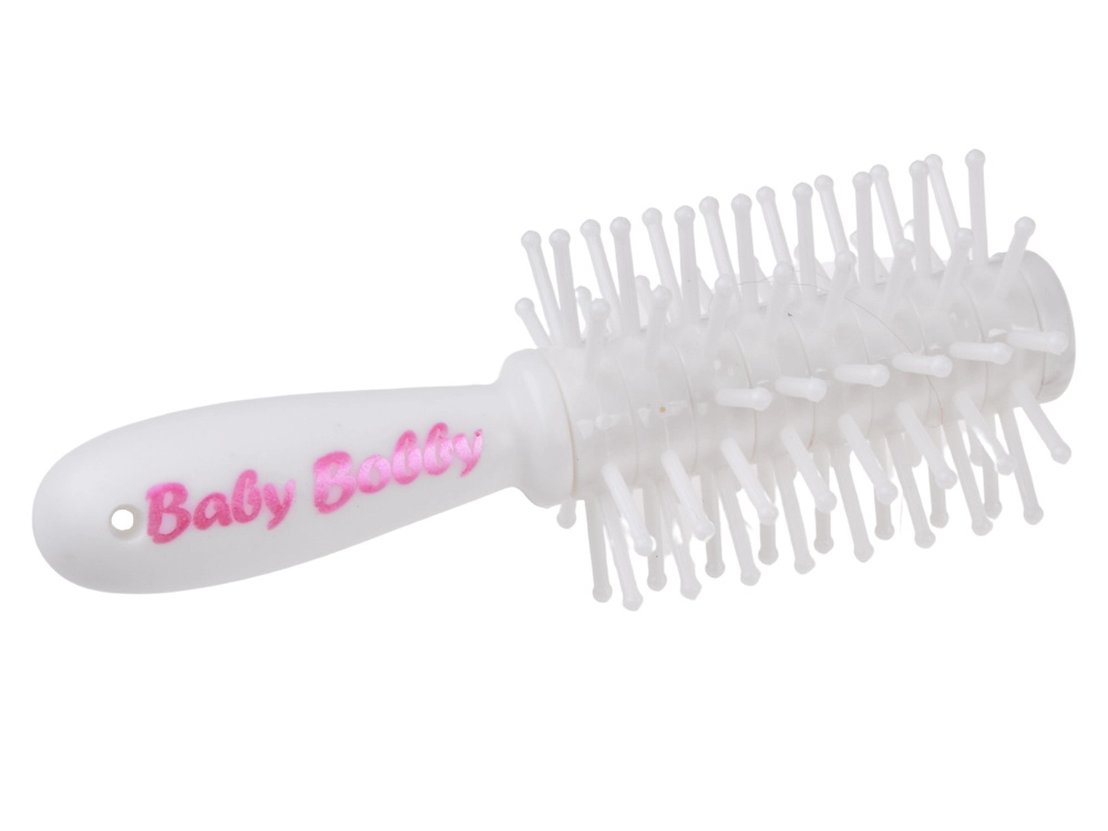Părul des șaten se poate pieptăna, împleti și stiliza cu ușurință. Peria inclusă susține dezvoltarea motricității fine și a imaginației în timpul jocului.