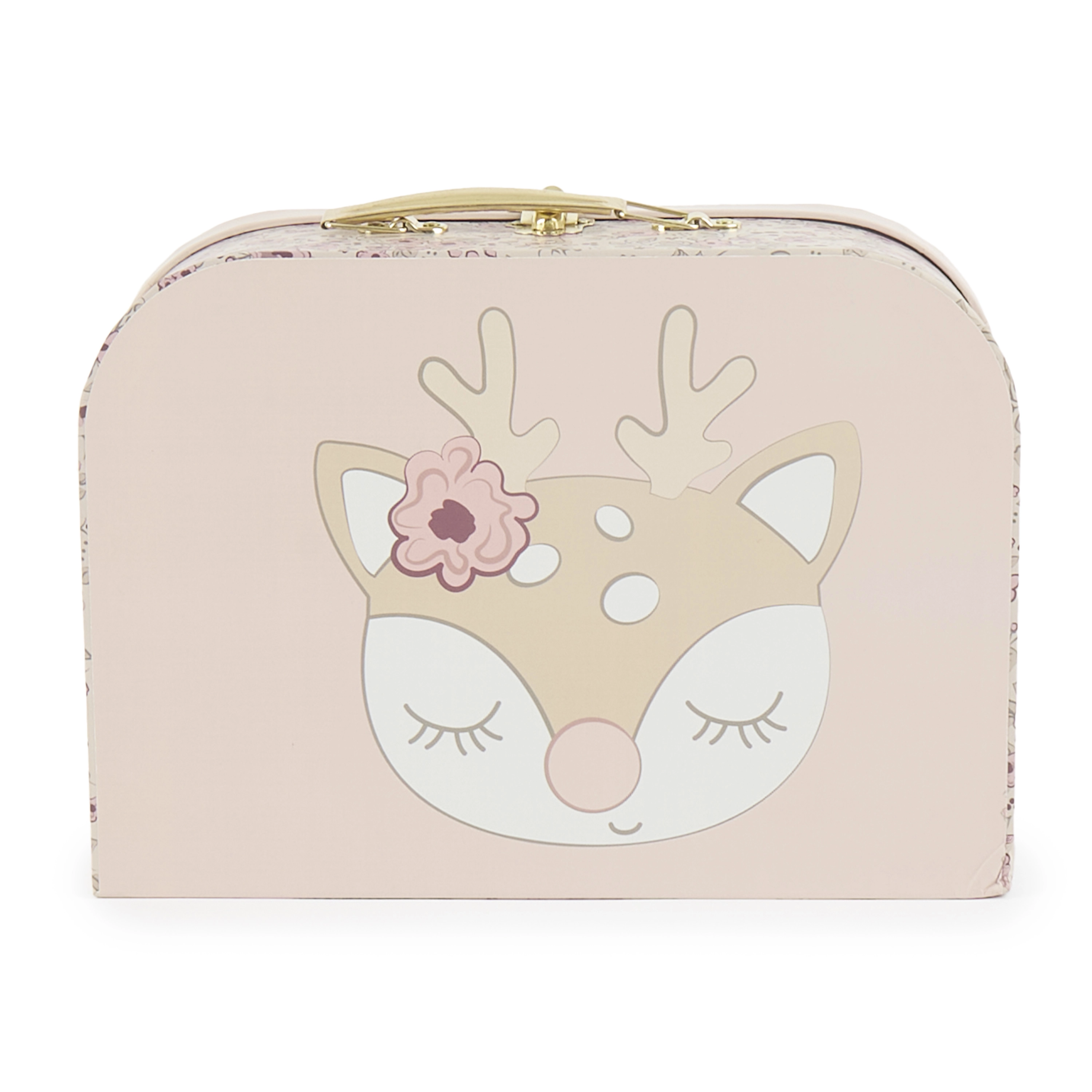 Un set adorabil de trei valize din carton, cu motivul căprioarei Ella și design floral, care îi va încânta atât pe micii călători, cât și pe iubitorii de ordine în camera copiilor. Valizele sunt realizate din carton rezistent certificat FSC, au clips metalic și mâner confortabil. Datorită posibilității de a fi introduse una în alta, sunt compacte, rezistente și multifuncționale – ideale pentru jucării, comori și mărunțișuri pentru drum.