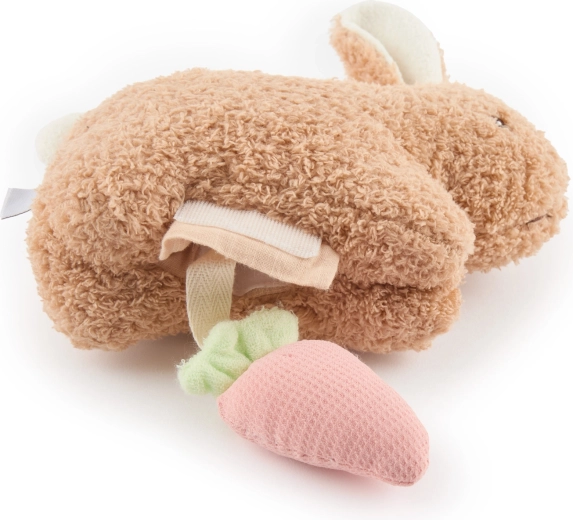 Datorită dimensiunilor compacte, iepurașul este un companion grozav pentru pătuț, cărucior și călătorii. Joaca de a scoate morcovul susține coordonarea mână–ochi și descoperirea diferitelor texturi. Produsul respectă standardul european de siguranță a jucăriilor EN 71 și este testat independent pentru substanțe dăunătoare.