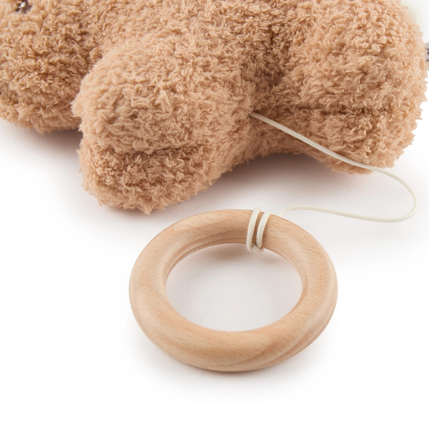 Pluș plăcut și inel din lemn pentru mâini mici