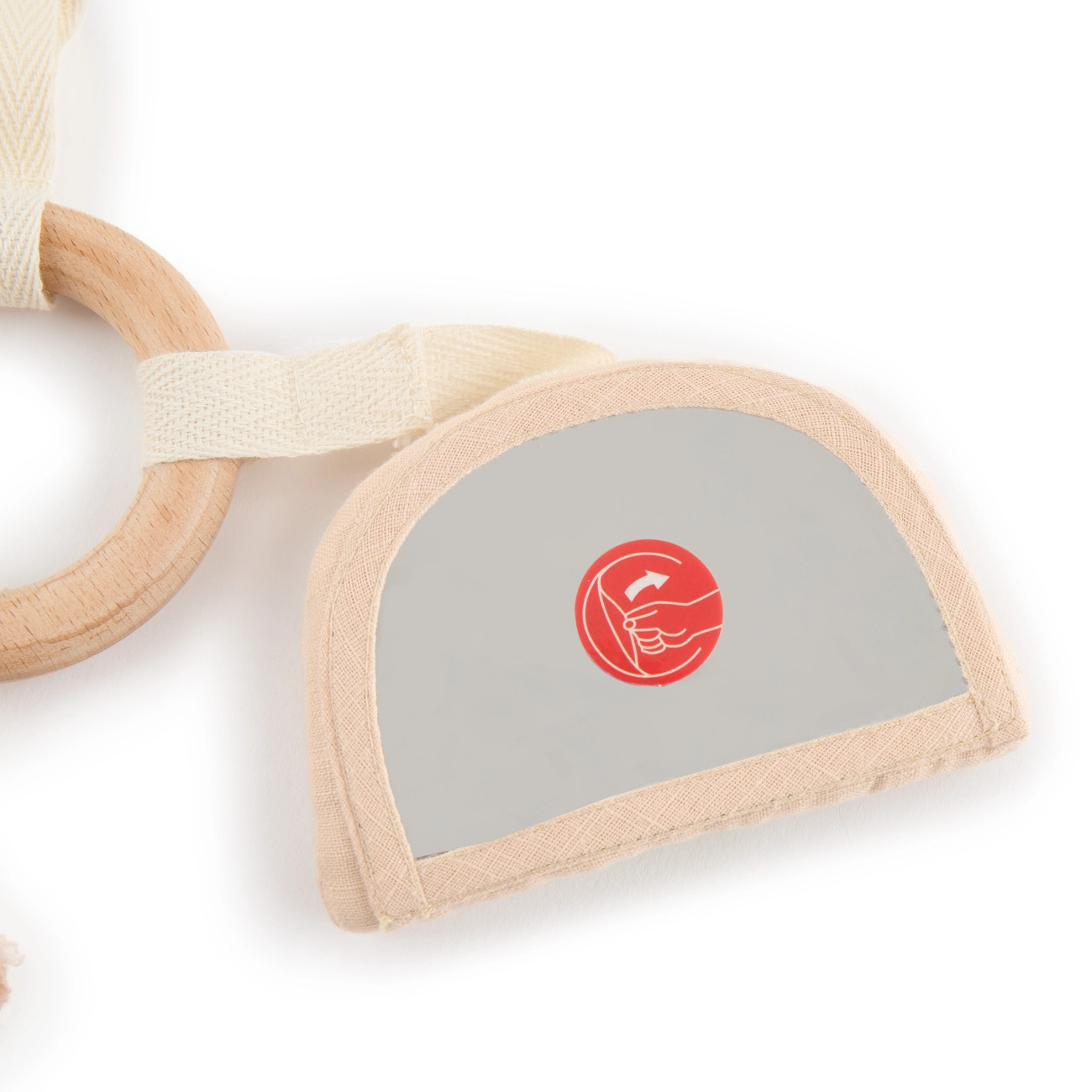 Adorabilul inel din lemn cu motivul iepurașului Fine este prima jucărie motrică ideală pentru bebeluși încă de la naștere. Oferă dezvoltarea motricității fine, stimularea tactilă și auditivă, iar datorită curelelor practice îl poți fixa cu ușurință deasupra pătuțului sau pe bara de activități. Trei jucării detașabile cu efecte variate mențin atenția copilului, iar inelul neted din lemn servește și ca ajutor la erupția dinților.