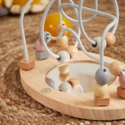 Deplasarea mărgelelor de-a lungul curbelor firelor îi învață pe copii prinderea precisă, îmbunătățește coordonarea mână–ochi și favorizează concentrarea într-un mod natural și ludic.