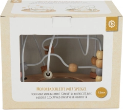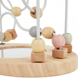 Acest labirint motric stilat în tonuri de roz este jucăria ideală pentru primele abilități. Prin deplasarea mărgelelor pe traseele metalice, copiii exersează prinderea, răbdarea și percepția spațială. Oglinda centrală captează atenția și susține conștientizarea de sine și percepția senzorială.