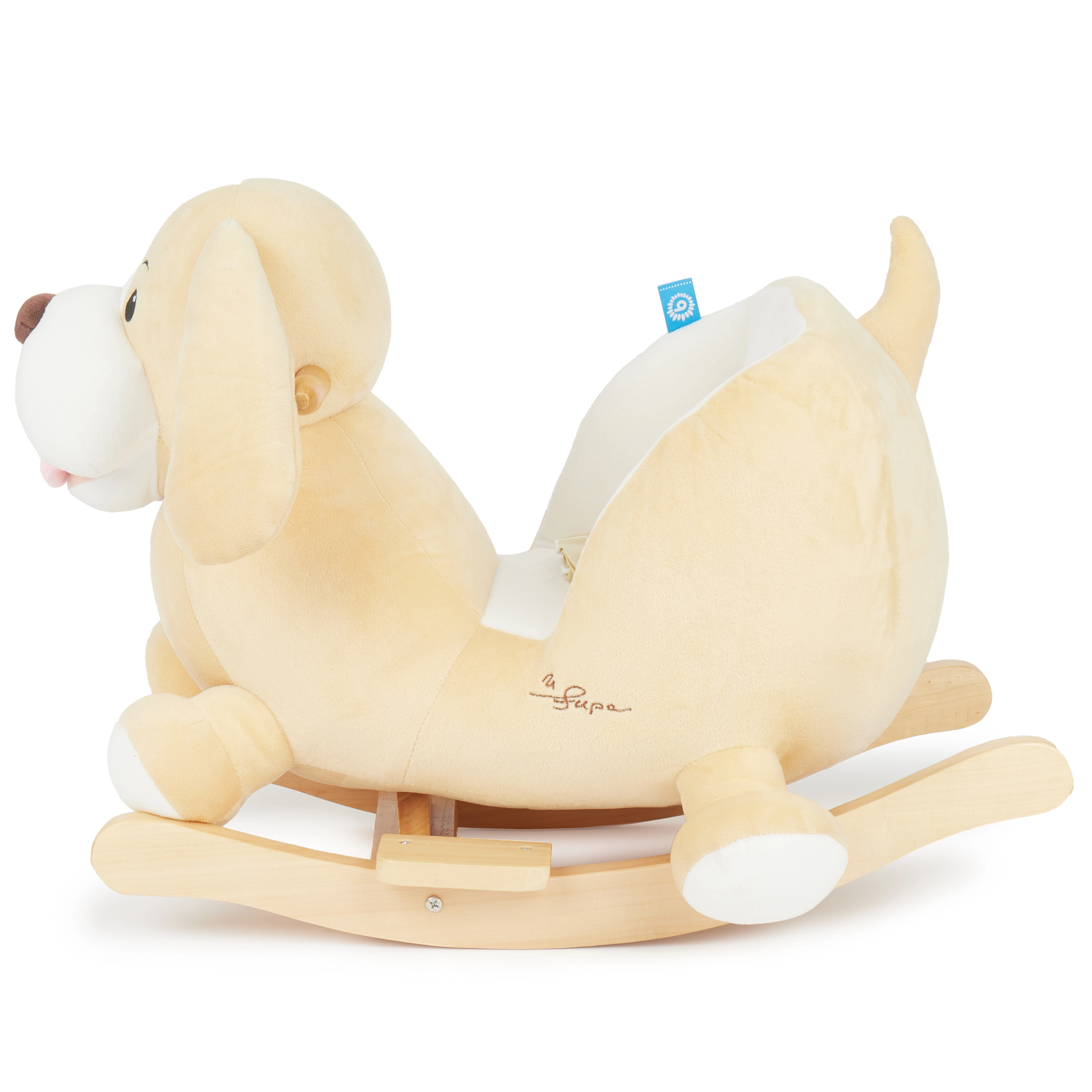 Cățelul balansoar Sam transformă orice cameră de copii într-un loc distractiv și sigur. Datorită înălțimii reduse a șeii (cca 14 cm), copiii pot urca și coborî ușor și în siguranță, în timp ce tapițeria moale și centura de siguranță oferă stabilitate chiar și celor mai mici. Baza stabilă din lemn masiv, cu protecție împotriva răsturnării, și mânerele comode din lemn susțin jocul în siguranță.