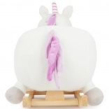 Unicornul balansoar Bieco transformă fiecare legănare într-o aventură sigură și plină de bucurie. Scaunul cozy, căptușit, cu centură îi ține pe micii călăreți bine fixați, în timp ce patinele masive din lemn cu protecție împotriva răsturnării oferă stabilitate. Mânerele ergonomice din lemn și înălțimea joasă a șezutului (cca 14 cm) ușurează urcarea și coborârea.