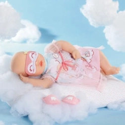 Cu această cămășuță de noapte, Baby Annabell se simte ca pe un nor. Datorită fustiței superioare din tulle și motivelor vesele de oițe, păpușa ta va adormi cu plăcere în fiecare noapte. Ritualul de noapte este însoțit și de o mască drăgălașă de dormit și papucei, care pot fi scoși ușor.