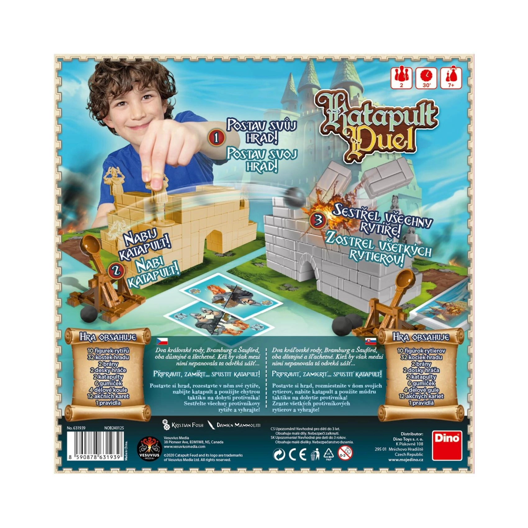 Pregătește-te pentru un duel palpitant al castelelor! În jocul de familie Katapult Duel îți construiești fortărețe, îți plasezi unitățile de apărare și îți ataci adversarul cu ajutorul catapultelor. Reguli simple, cartonașe tactice și partide rapide pentru 2 jucători fac din acest joc o distracție ideală atât pentru copii de la 7 ani, cât și pentru adulți.