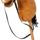 Calul pe băț Melody este partenerul ideal pentru călăreții mici și mai mari care adoră hobby horsing. Capul textil moale cu coamă deasă ce poate fi pieptănată, zăbala realistă cu lesă și gura deschisă pentru montarea „morsului” adaugă un plus de autenticitate jocului. Bățul din lemn, scurt și solid, cu filet, se ține confortabil în mână și poate fi ușor deșurubat pentru depozitare și transport compacte.