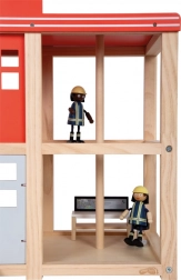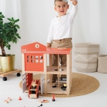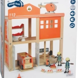 Marea stație de pompieri din lemn de la Small foot este un set de joc bine gândit pentru micii eroi. Oferă două niveluri cu centru de comandă, zonă de odihnă și atelier, spațiu pentru parcat vehiculul și platformă de aterizare pentru elicopter. Construcția deschisă și ușile mari asigură acces facil în toate colțurile stației.