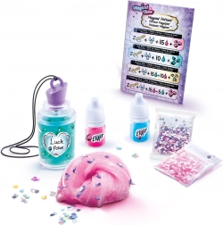 - Card cu rețete, 2 recipiente pentru elixire, 1 plic cu praf pentru slime, 3 plicuri cu decorațiuni, 1 coală cu abțibilduri, 1 sticluță pentru poțiune cu șnur