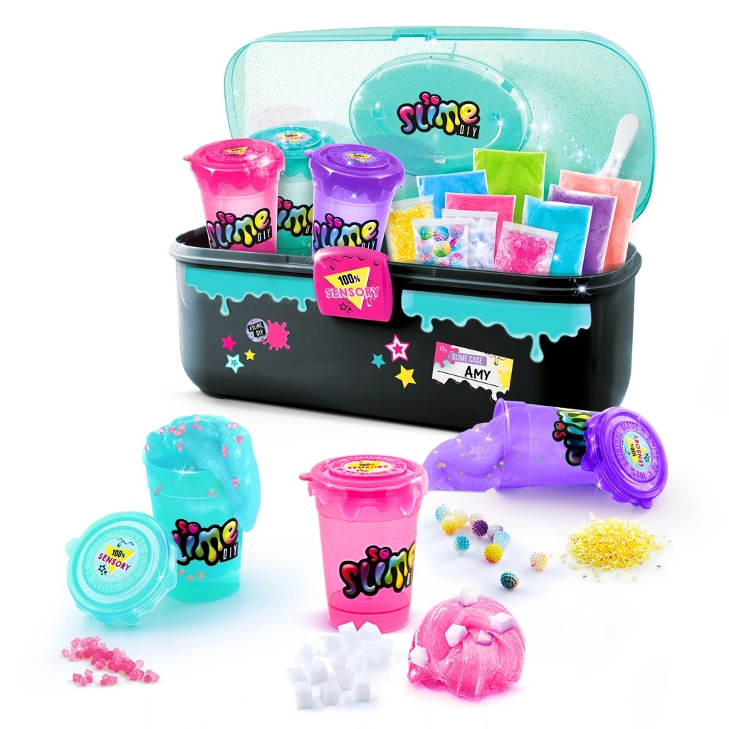 Descoperă valiza distractivă So Slime pentru a crea propriile slime-uri, care oferă copiilor distracție senzorială oricând și oriunde. Pur și simplu amestecă, decorează și întinde slime-uri colorate, păstrează-le în recipiente și ia tot setul comod cu tine. Ideal pentru joacă creativă și pentru dezvoltarea motricității fine a copiilor de la 6 ani.