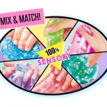 Amestecă, întinde și frământă. Culorile variate, sclipiciul și mărgelele creează efecte captivante și o experiență tactilă bogată.