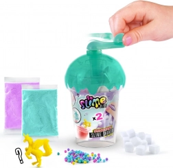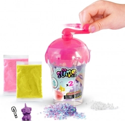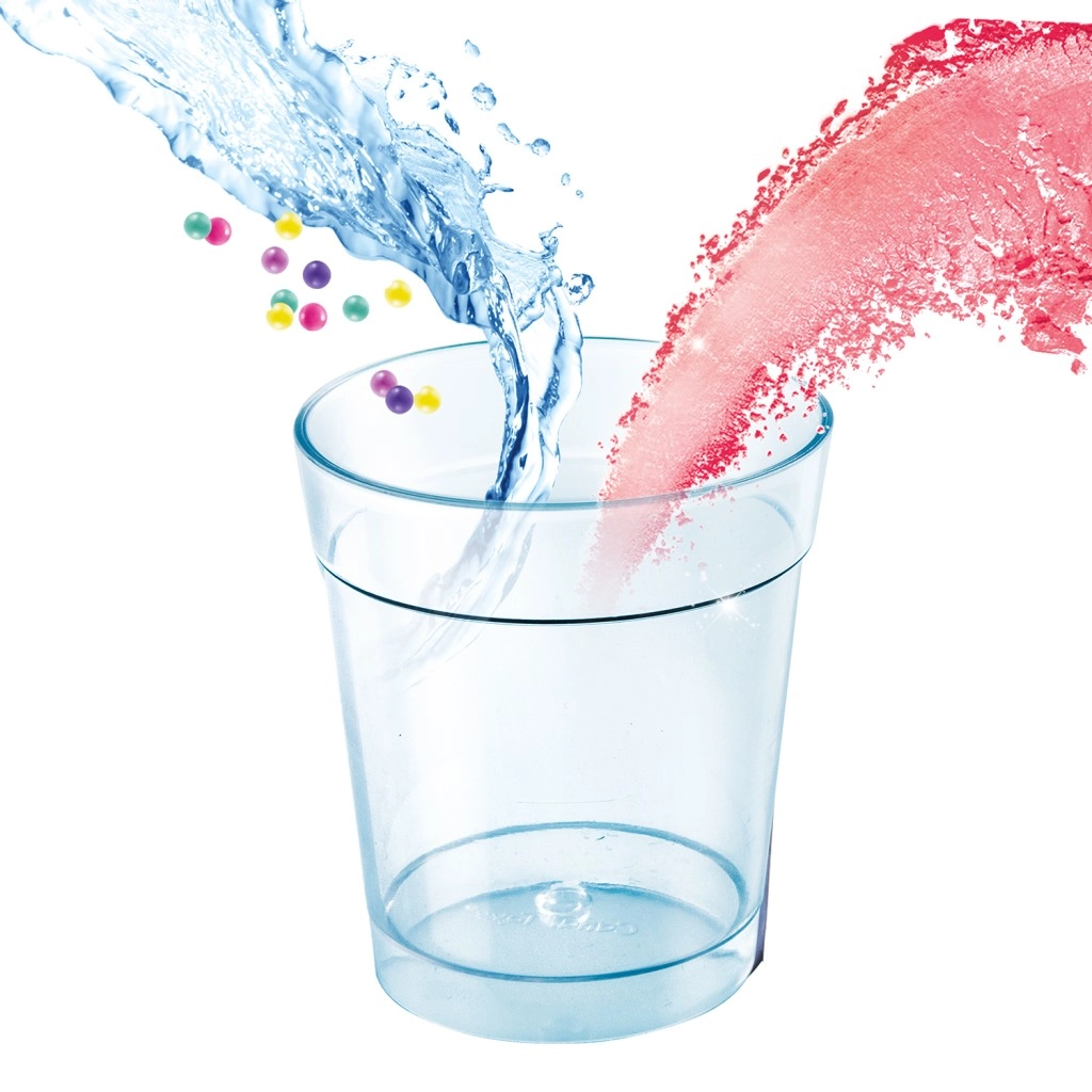 Totul se pregătește direct în pahar: turnați pudra, adăugați apă până la marcajul indicat, închideți și agitați energic. După deschidere, lăsați amestecul să se odihnească puțin și vă puteți bucura de întinderea, strângerea și modelarea slime-ului pentru relaxare senzorială și joacă creativă.