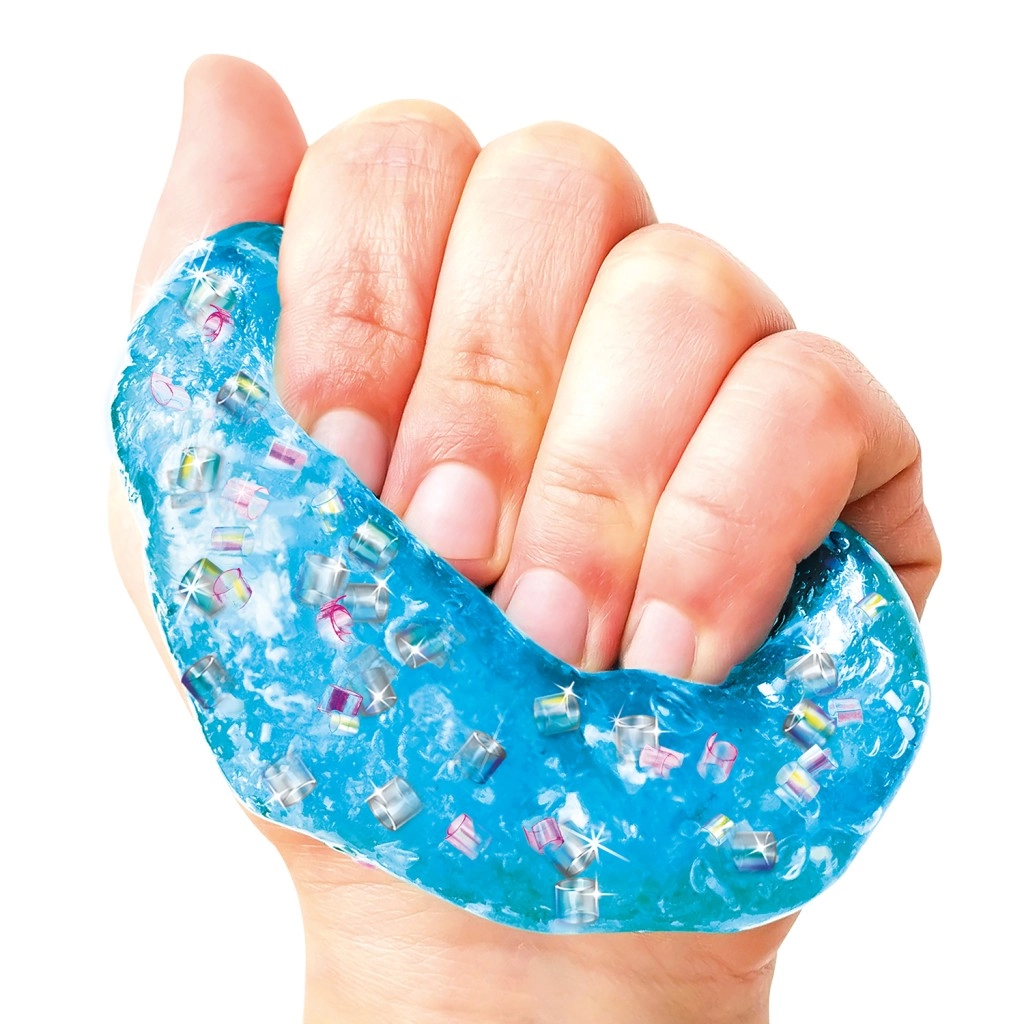 Decorați slime-ul cu sclipici, confetti, mărgele sau cuburi din spumă și creați combinații unice de culori și texturi.
