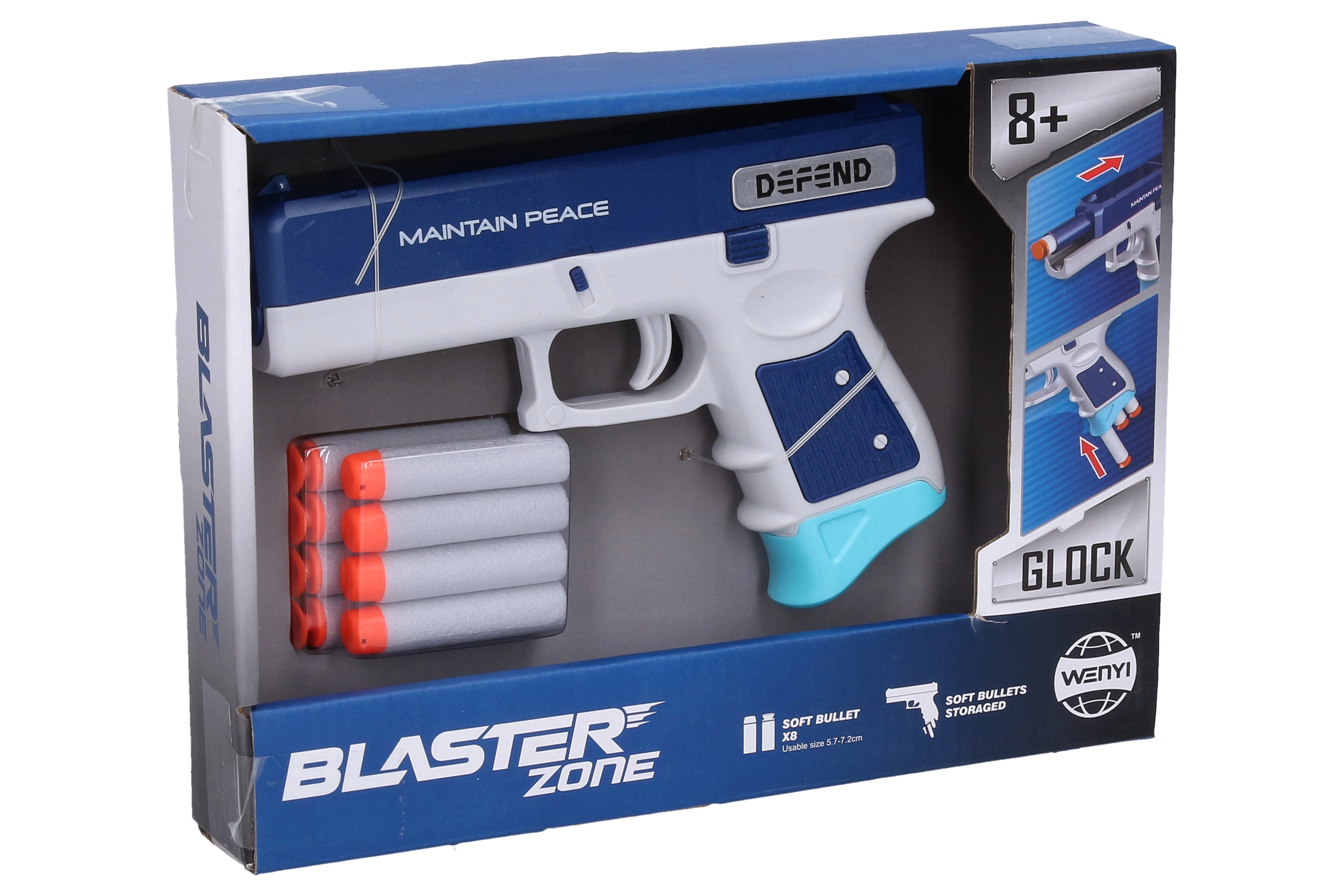 Manevrarea este intuitivă: introduceți glonțul în țeavă, armați partea superioară a pistolului și apăsați trăgaciul. Suprafața practică de depozitare din partea inferioară a mânerului vă permite să aveți proiectilele mereu la îndemână. Dimensiunile compacte se potrivesc confortabil în mâna copilului și asigură o prindere sigură.