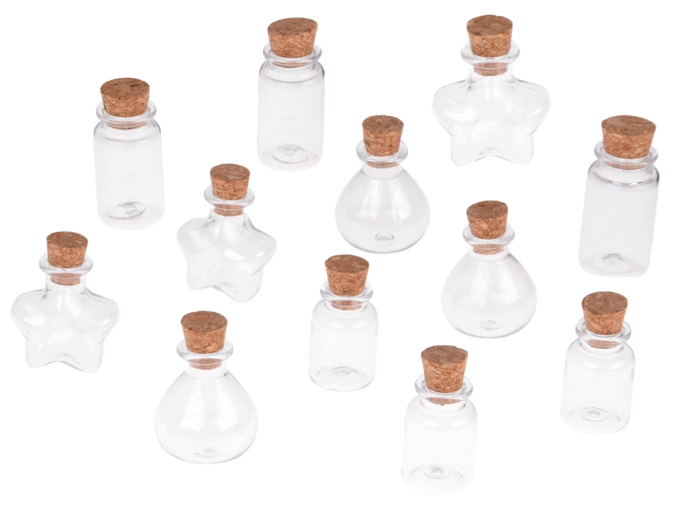 - 12× mini sticluță de forme diferite cu dop de plută