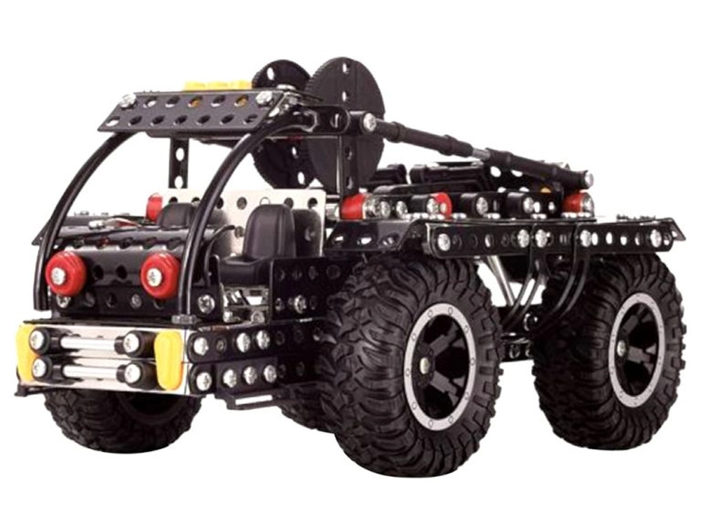 Acest set de construcție metalic robust îi va încânta pe copiii de la 8 ani în sus, pe adolescenți și pe adulți care iubesc provocările și creația creativă. Datorită combinației de fâșii, grinzi și conectori metalici cu accesorii din plastic și anvelope mari din cauciuc, modelul final arată realist și este stabil.
