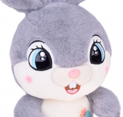 Iepurașul de pluș drăgălaș, cu înălțimea de 40 cm, este confecționat din material incredibil de moale și catifelat, într-o nuanță gri-argintiu, cu un burtică crem. Are urechi lungi și flexibile, un năsuc adorabil și detalii brodate sigure. Este ideal pentru alintat, ca însoțitor liniștitor și ca decor stilat pentru camera copilului.