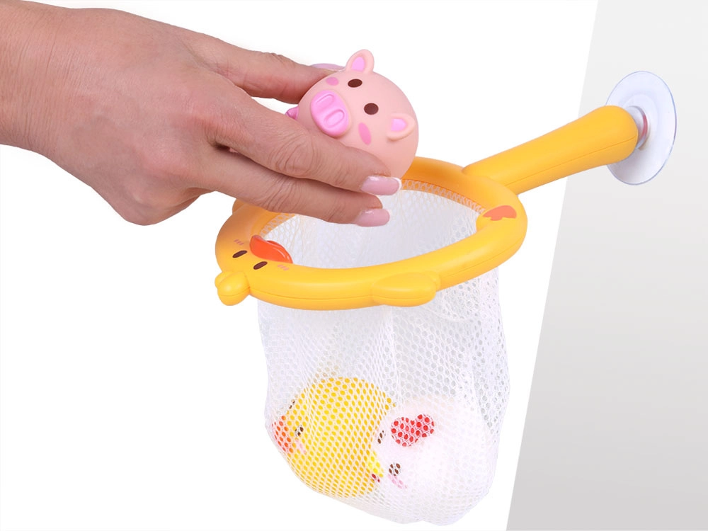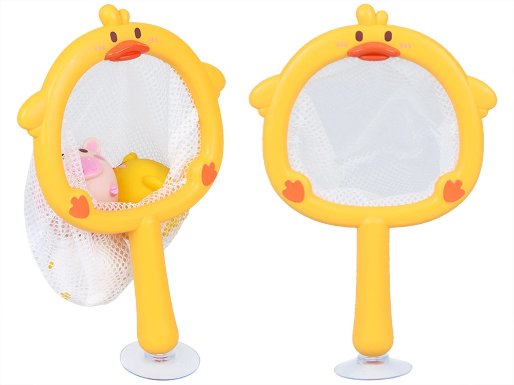 Plasa în formă de rață cu ventuză se fixează pe suprafețe netede. Copiii pot prinde animăluțele, le pot depozita și lăsa la scurs – ordinea în cadă devine o joacă.