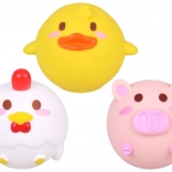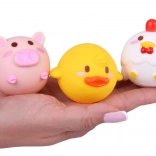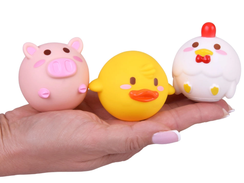 Animăluțele au formă rotunjită și nu conțin niciun orificiu – apa nu pătrunde în interior, ceea ce asigură mai multă igienă și o durată de viață mai lungă. Culorile vii și expresiile prietenoase ale animăluțelor susțin dezvoltarea simțurilor și învățarea prin joc – recunoașterea culorilor, denumirea animalelor sau numărarea simplă.