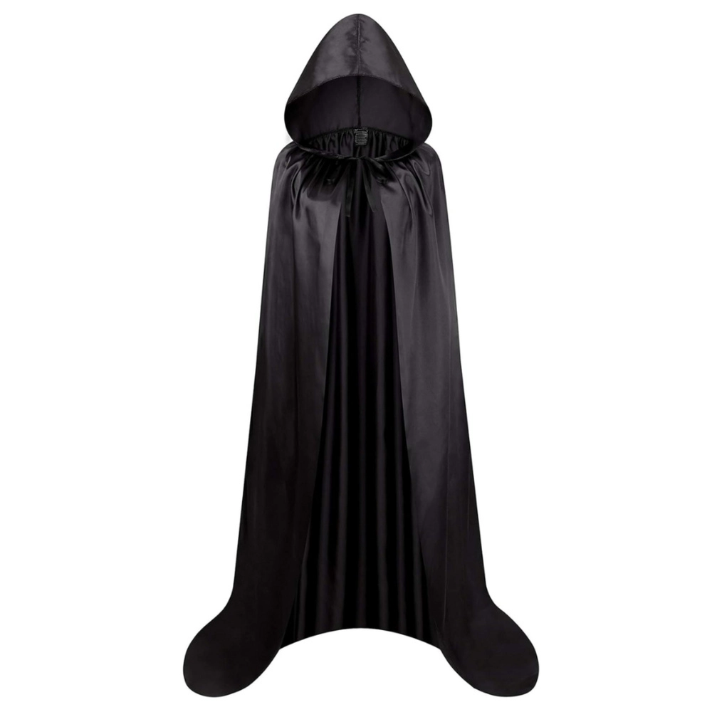 Cauți o modalitate simplă de a completa un costum pentru Halloween, carnaval sau o petrecere tematică? Această pelerină neagră cu glugă din țesătură sintetică ușoară cade elegant, se așază bine pe corp și, datorită lungimii de 180 cm (fără glugă), este potrivită pentru adulți și copii mai mari.