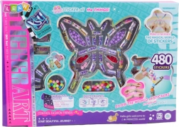 Acest set creativ oferă copiilor ore întregi de distracție și dezvoltare a abilităților. Datorită numărului mare de autocolante și mărgele, pot crea decorațiuni originale, brățări sau coliere și își pot decora obiectele preferate. Organizatorul practic în formă de fluture păstrează toate piesele ordonate într-un singur loc.