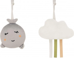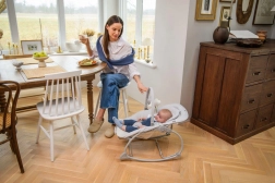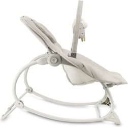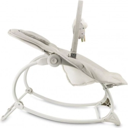 Construcția stabilă, centura în 3 puncte și posibilitatea de blocare a legănării sporesc siguranța. Bara cu două jucării moi stimulează simțurile și îl distrează pe cel mic.