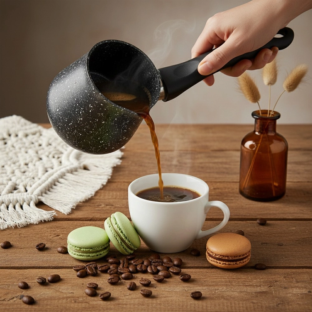 Proiectat pentru preparare autentică: adăugați cafea măcinată, turnați apă și încălziți lent pentru o aromă bogată fără a fierbe în exces.