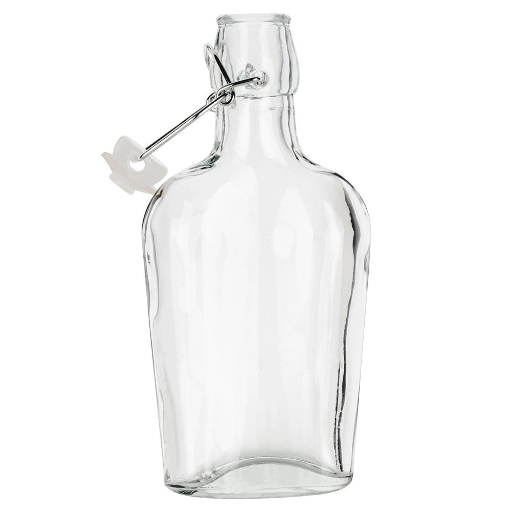 Sticlă practică din sticlă cu volum de 180 ml, cu închidere patentată cu clips pentru depozitarea băuturilor în siguranță și cu stil. Ideală pentru vinuri de casă, lichioruri, siropuri și bere. Sticla groasă și rezistentă evidențiază frumos conținutul, iar clipsul etanș previne scurgerile și prelungește prospețimea. Dimensiunile sticlei sunt 9 × 4 × 20 cm.