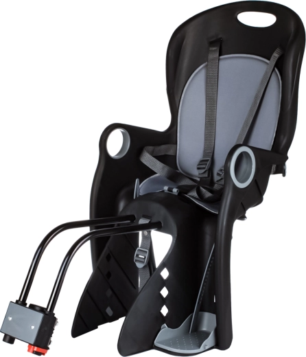 Datorită clemei cu eliberare rapidă, scaunul poate fi montat sau demontat cu ușurință de pe brațele tijei de șa în câteva clipe. Centurile și suporturile de picioare reglabile asigură o poziționare corectă a copilului în diferite etape de creștere.