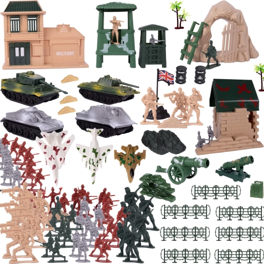 Acest set militar amplu oferă copiilor ore de distracție și spațiu pentru a crea scene de luptă captivante. În pachet găsiți o selecție variată de accesorii: figurine de soldați, avioane, tancuri, bariere, construcții, puncte de observare, arme și multe altele. Datorită genții transparente practice cu fermoar, totul rămâne la un loc și pregătit de drum.