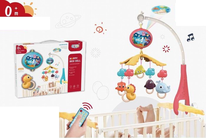 Caruselul pentru pătuț cu proiector creează un mediu calm pentru somn și joacă. Melodiile blânde și efectele luminoase ajută bebelușul să se relaxeze, în timp ce elementele suspendate care se rotesc lent susțin dezvoltarea vederii și a concentrării. Controlul de la distanță îți permite să pornești funcțiile fără a deranja copilul.