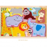 Sunt incluse animale îndrăgite precum bufniță, leu, elefant, hipopotam, gorilă, rinocer, urs și girafă, în dimensiuni clare care facilitează manevrarea și asamblarea. Puzzle-ul este potrivit pentru copii de la 3 ani, iar datorită dimensiunilor compacte este ideal atât acasă, cât și în călătorii.