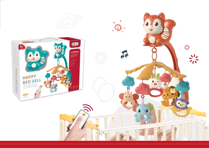 Caruselul pentru pătuț cu adorabila veveriță aduce o combinație de stimulare vizuală și efecte calmante. Datorită proiectorului, proiectează modele luminoase delicate care susțin relaxarea și somnul. Cele cinci pandantive suspendate (zornăitori/mușcăcioare) oferă texturi și sunete variate pentru dezvoltarea motricității fine și a percepției senzoriale.