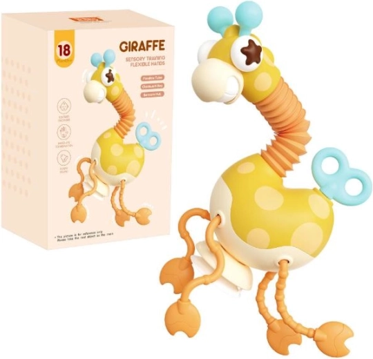 Această girafă senzorială oferă copiilor distracție și învățare – trageți și împingeți gâtul, observați schimbarea dimensiunilor și exersați îndemânarea. Jucăria este concepută pentru mâini mici și susține dezvoltarea naturală a simțurilor prin atingere și mișcare.