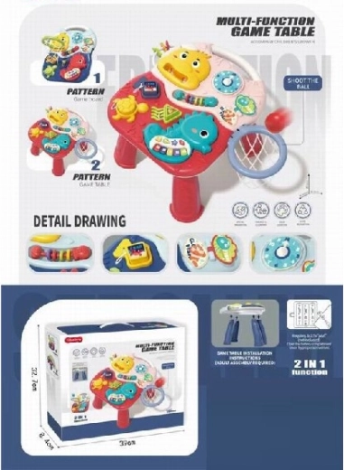 Măsuța educativă distractivă cu motiv Dino îmbină joaca și învățarea într-un singur produs. Copiii vor fi încântați de efectele luminoase, funcțiile sonore și micul coș de baschet, care dezvoltă motricitatea și coordonarea. Construcția ușoară și rezistentă din plastic este ideală pentru camera copilului, iar datorită alimentării pe baterii, măsuța poate fi ușor transportată și folosită oriunde.