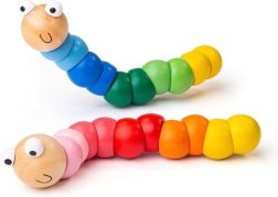 Segmentele unite printr-un sistem elastic permit rotirea și îndoirea liberă a viermișorului în diverse forme – ideal pentru joacă plină de curiozitate și antrenarea prinderii.