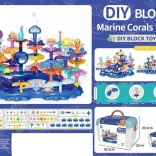 Acest set jucăuș aduce copiilor lumea subacvatică a culorilor și formelor. Cu 76 de piese proiectate cu grijă, se poate asambla un recif de corali „floral” original, care susține creativitatea, orientarea spațială și răbdarea. Piesele sunt fabricate din plastic de calitate, ușor, durabil și ușor de curățat.
