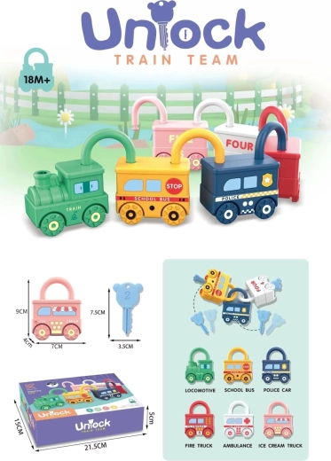 Acest joc senzorial logic cu cheițe și încuietori le aduce copiilor bucuria descoperirii. Sarcina este să potrivească corect cheița cu încuietoarea corespunzătoare de pe mașinuțele adorabile. Datorită principiului simplu și culorilor vii, jocul este potrivit încă de la vârsta de toddler și susține dezvoltarea recunoașterii formelor, culorilor și relațiilor.