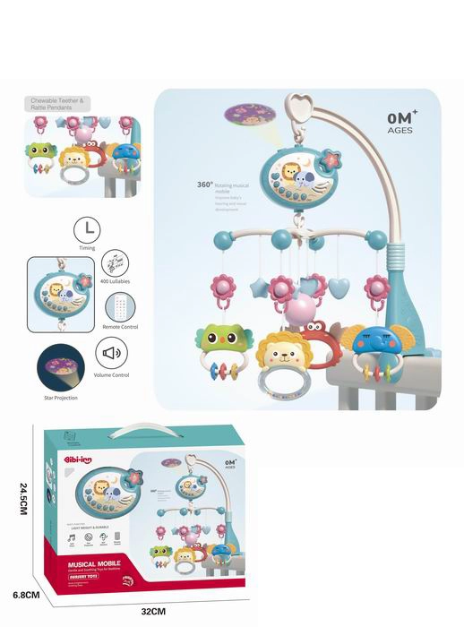 Caruselul stilat pentru pătuț cu animăluțe, în culoare albastră, îi ajută pe cei mici să adoarmă mai ușor și le stimulează simțurile. Cutiuța muzicală integrată cu lumină și sunet creează o atmosferă liniștitoare, în timp ce brațele rotative cu animăluțe captează atenția bebelușului și îi susțin percepția vizuală.