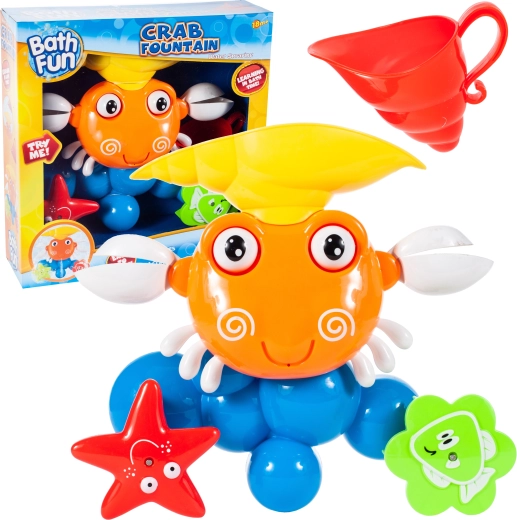 Crabul poate fi așezat direct sub jetul de apă de la robinet sau folosit cu rezervorul de apă inclus. Jucăria este concepută să reziste mediului umed și să ofere copiilor distracție la baie, clătire și jocuri cu jeturi de apă.