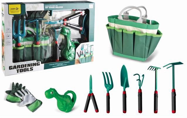 - Echipare completă: stropitoare, foarfecă, greblă, lopățică, săpăligă, cultivator mic, mănuși