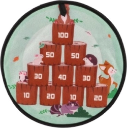 Ținta dublă față cu scai este concepută pentru a aduce distracție și învățare în jocul copiilor. O parte a țintei este plină de culori vii și cifre; ideală pentru competiții de aruncat și îmbunătățirea abilităților de calcul. Cealaltă parte oferă o temă de pădure cu animale, adăugând un element de poveste distractiv.