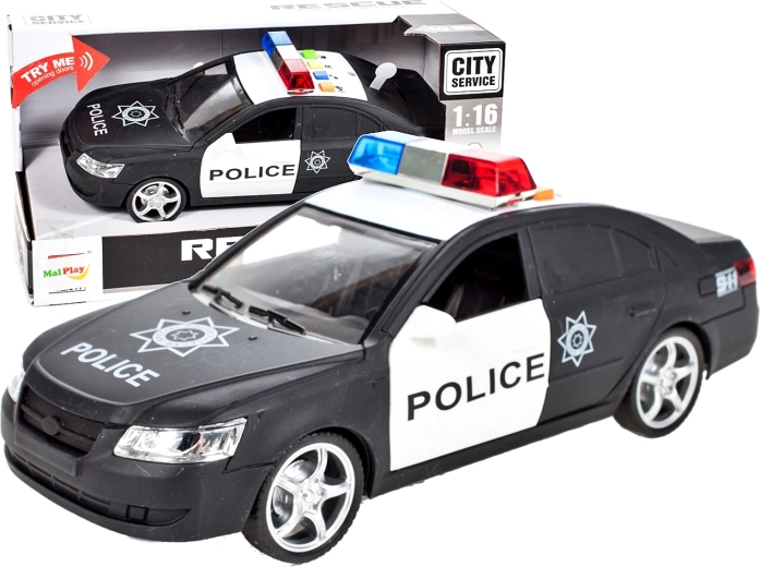 Intrați în lumea intervențiilor poliției cu un model detaliat de mașină de poliție la scara 1:16. Jocul devine și mai distractiv datorită mai multor efecte sonore realiste – de la claxon și sirenă până la sunetul de închidere și mersul înapoi. Ideal pentru joaca acasă sau ca piesă de colecție.