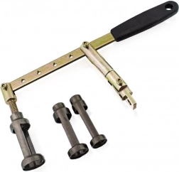 Datorită construcției robuste și brațului reglabil, unealta oferă stabilitate, precizie și durabilitate. Cele trei capete incluse, de 20 mm, 26 mm și 35 mm, acoperă o gamă largă de arcuri de supapă. Întregul set este livrat într-o geantă rezistentă pentru transport ușor și depozitare ordonată.