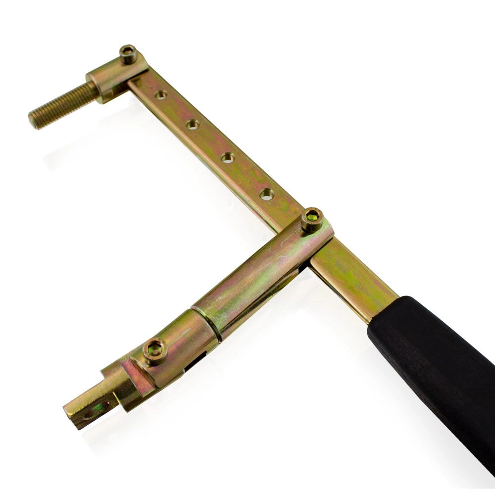 Acest extractor universal pentru arcurile supapelor permite comprimarea sigură și precisă a arcului și eliberarea penelelor, astfel încât puteți efectua înlocuirea simeringurilor tijelor supapelor fără a demonta chiulasa. Alegerea ideală pentru service-uri auto și mecanici amatori care caută o soluție eficientă și fiabilă pentru motoare 8V, 12V și 16V cu arbore cu came superior (OHC).